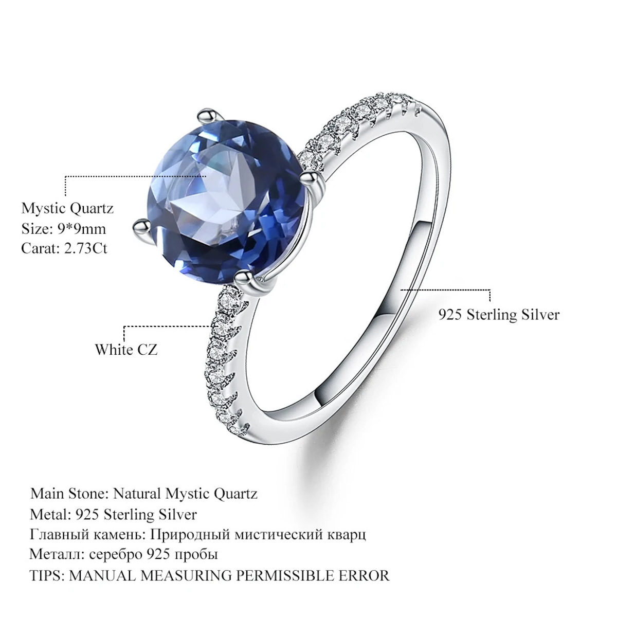 Elevate your style with this iolite blue mystic quartz simple ring. Crafted from 925 sterling silver, this ring features a natural iolite blue mystic quartz gemstone in a minimalist design. The mesmerizing hues of the quartz stone add a touch of elegance to any outfit, making this ring perfect for everyday wear or special occasions.