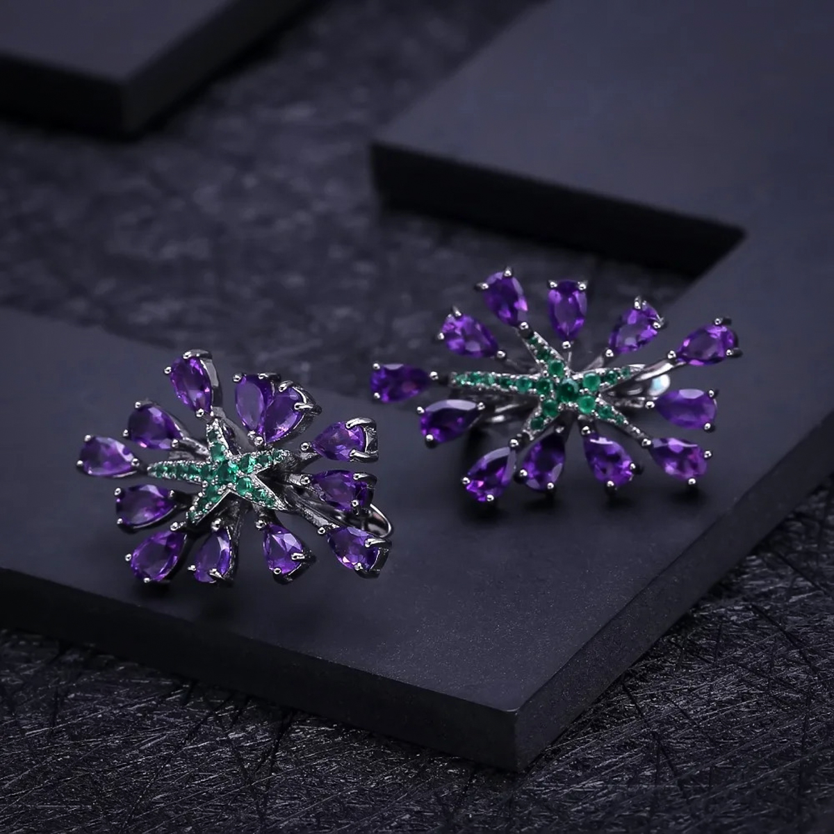 Make a bold statement with these Gothic Purple Fine Clip Earrings. Crafted in 925 Sterling Silver, these earrings feature 4.69ct natural amethyst gemstones in an elegant clip-on design. The rich purple hue of the amethyst stones adds a touch of sophistication to any ensemble, making these earrings perfect for both casual and formal occasions. Whether worn with a sleek updo or flowing locks, these amethyst earrings are sure to make a statement and turn heads wherever you go. Treat yourself or someone special to these exquisite earrings and add a pop of color to any look.
