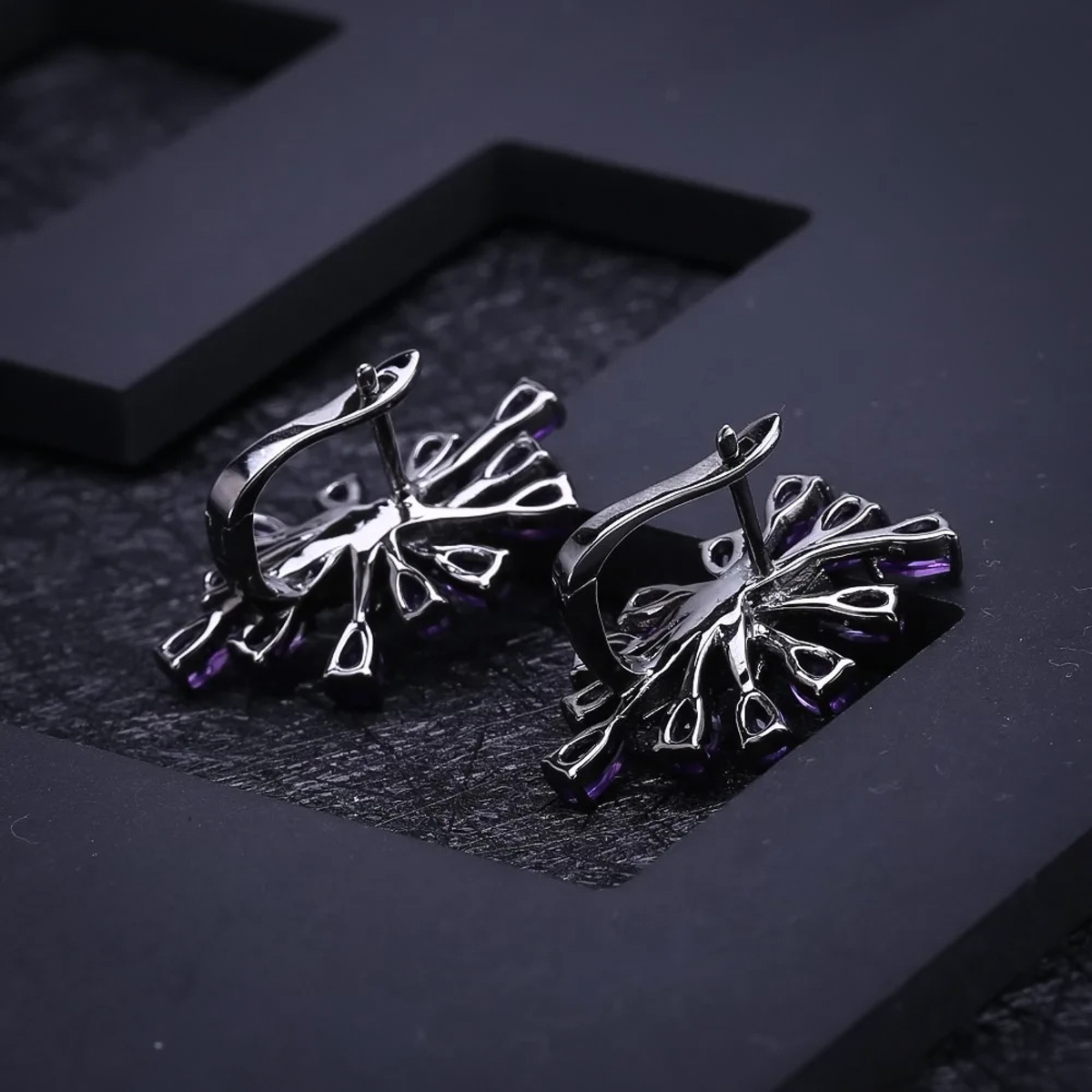 Gothic Purple Amethyst Clip Earrings